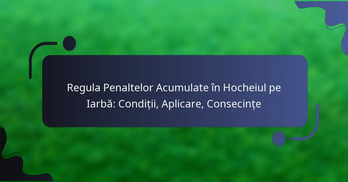 Penalizările acumulate în hocheiul pe iarbă apar atunci când un jucător comite multiple infracțiuni pe parcursul unui meci, ducând la acțiuni disciplinare sporite. Condițiile specifice pentru acumulare depind de natura infracțiunilor, frecvența aparițiilor și aplicarea regulilor de către oficiali.