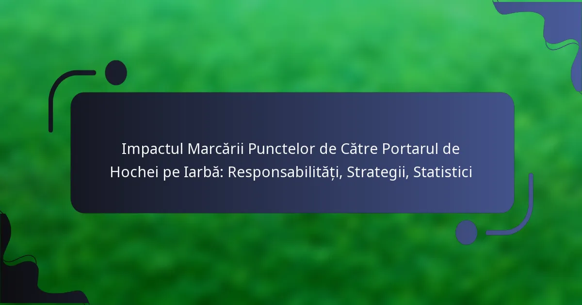 În hocheiul pe iarbă, portarului îi revine un rol esențial atât în apărare, cât și în atac, având sarcina de a preveni golurile, dar și de a facilita oportunitățile de marcaj. Prin stăpânirea responsabilităților lor și aplicarea unor tehnici strategice, portarii pot influența semnificativ rezultatul jocului. Analiza statisticilor cheie de performanță evidențiază și mai mult impactul lor asupra succesului echipei și eficienței generale.