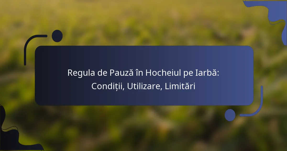 Regula de time-out în hocheiul pe iarbă are limitări specifice pe care jucătorii și antrenorii trebuie să le înțeleagă pentru a o utiliza eficient. De obicei, echipele au voie la un număr limitat de time-out-uri pe joc, iar utilizarea greșită poate duce la penalizări care afectează desfășurarea jocului. Înțelegerea acestor condiții poate îmbunătăți procesul decizional strategic în timpul meciurilor.